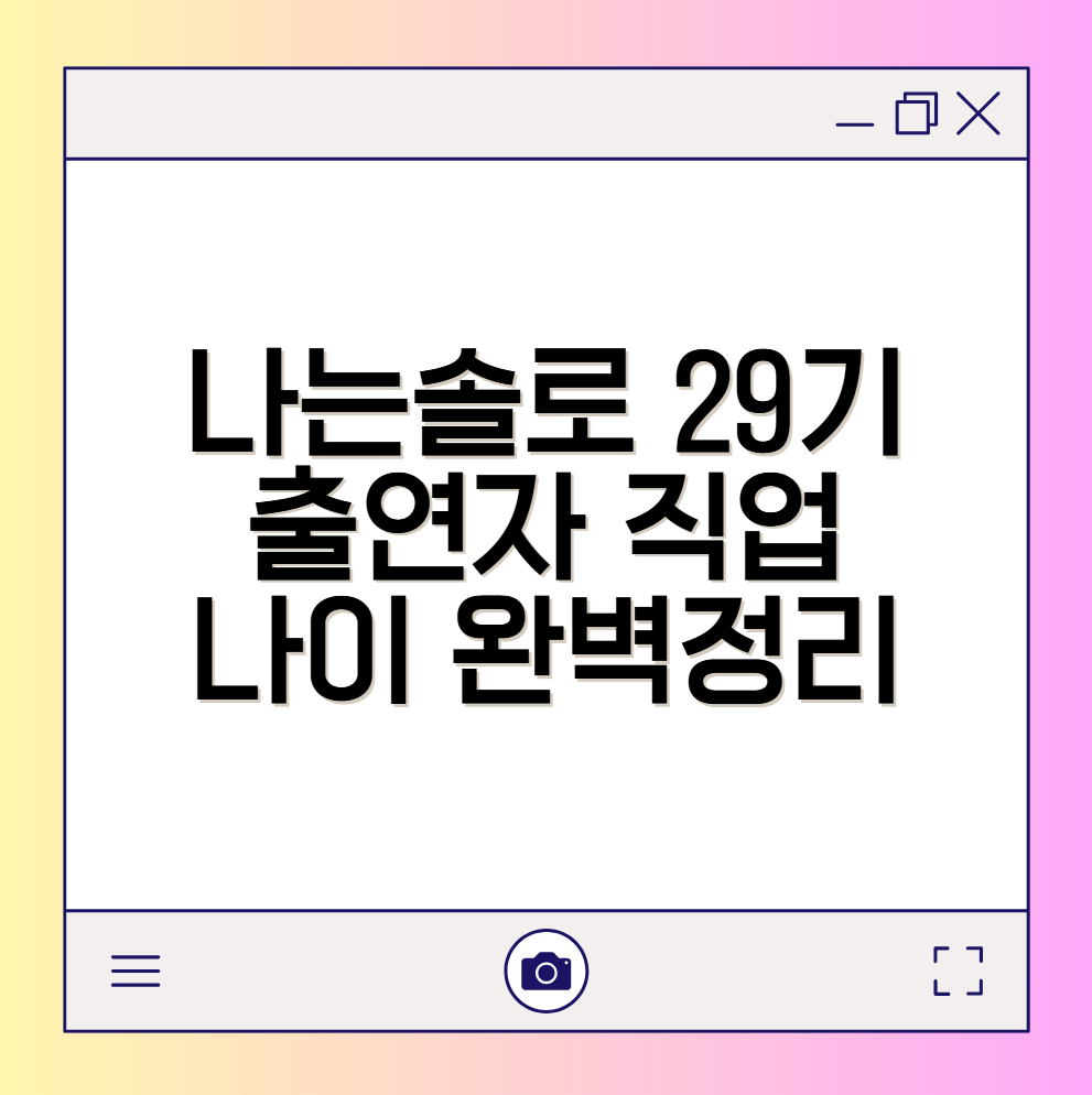 연애 리얼리티 프로그램 ‘나는 솔로’는 회차가 거듭될수록 점점 더 화제성이 높아지고 있습니다. 특히 29기는 방송 전부터 높은 스펙의 출연자들이 등장한다고 알려지며 주목을 받았는데요. 이번 글에서는 29기 출연자들의 직업과 나이를 한눈에 정리해 소개합니다.