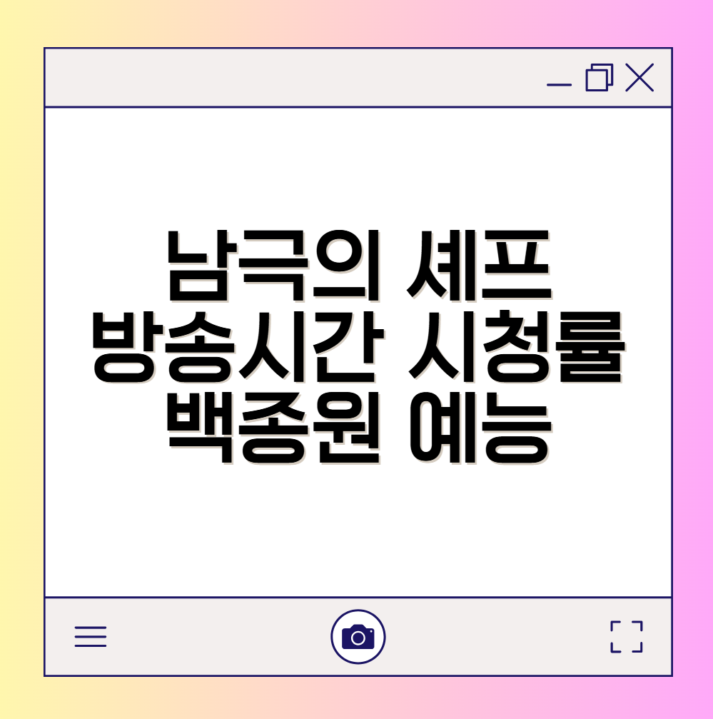 백종원이 새로운 예능 프로그램으로 돌아왔습니다. 이번에는 무려 ‘남극’에서 펼쳐지는 요리 이야기! MBC에서 방영 중인 〈남극의 셰프〉는 백종원이 실제 남극으로 향해 대한민국 과학기지 대원들을 위해 요리를 만드는 리얼리티 예능입니다. 이 글에서는 방송 시간과 시청률, 프로그램 특징까지 한눈에 정리해드릴게요.