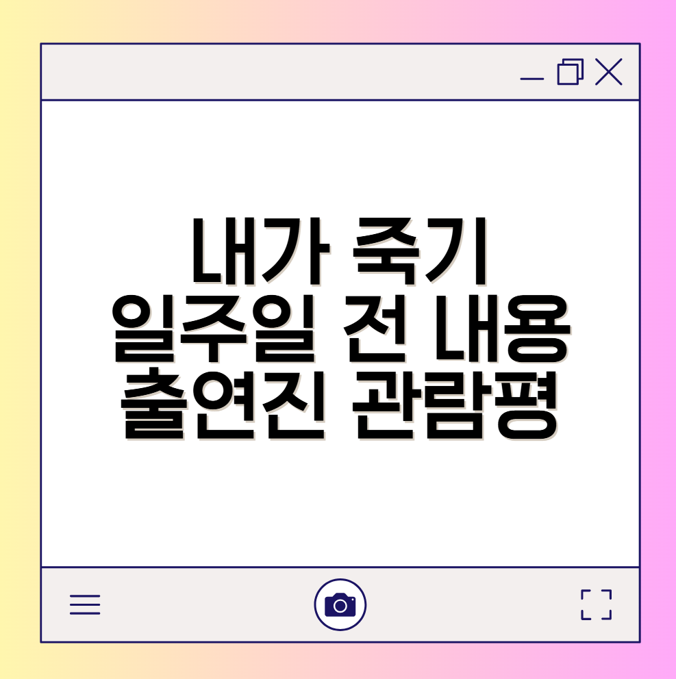 '내가 죽기 일주일 전'은 누구나 한 번쯤 상상해보는 주제를 진지하게 다룬 드라마입니다. “내가 딱 일주일만 산다면?”이라는 질문에서 시작되는 이 작품은 단순한 로맨스를 넘어, 삶의 의미와 인간 관계, 죽음을 바라보는 관점을 다시 돌아보게 만듭니다. 이 글에서는 이 드라마의 줄거리, 주요 인물, 결말, 관람평까지 핵심적으로 정리해드립니다.