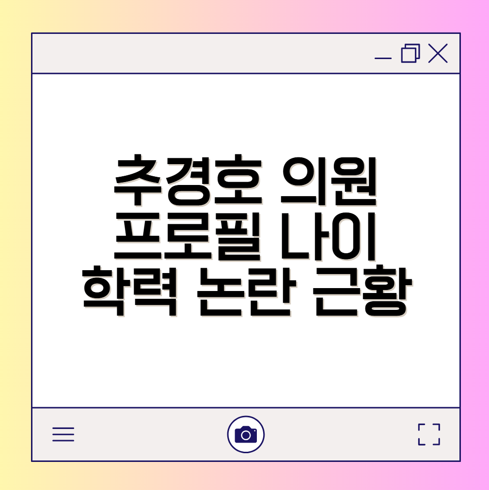 추 의원은 오랜 기간 정부 예산과 금융정책을 다룬 인물로, 정치권에서도 '경제통'으로 불립니다.
